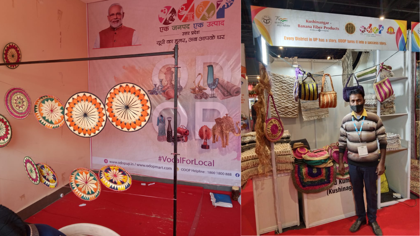 Late 2018, Ravi started manufacturing banana fibre products. The products also got listed in One District One Product (ODOP), a state government scheme, where his unique handicraft products got selected for state level exhibitions. He is invited to many state and national level exhibitions to showcase and sell his products.